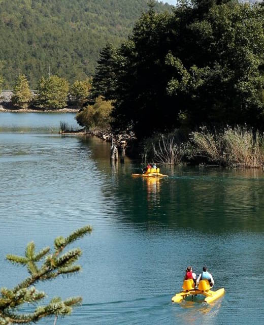 Πρώτος μας σταθμός η μαγευτική Λίμνη Δόξα, σε υψόμετρο 900 μ., ένα τοπίο που θυμίζει αλπική καρτ ποστάλ. Θα περπατήσουμε έως το εκκλησάκι του Αγίου Φανουρίου στο κέντρο της λίμνης, θα απολαύσουμε τη θέα και, για όσους το επιθυμούν, υπάρχει δυνατότητα για δραστηριότητες όπως υδροποδήλατα, buggy tours, Canoe-Kayak καθώς και ιππασία για μικρούς και μεγάλους!